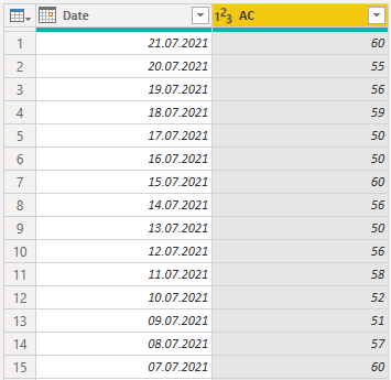 Razširimo tabelo z Expand in prikažemo samo nov AC stolpec.
