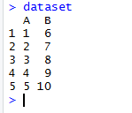 Oglejmo si spremenljivko dataset, ki je vedno ime prvotnega dataframe-a v R skripti. Sledimo naslednjim korakom.