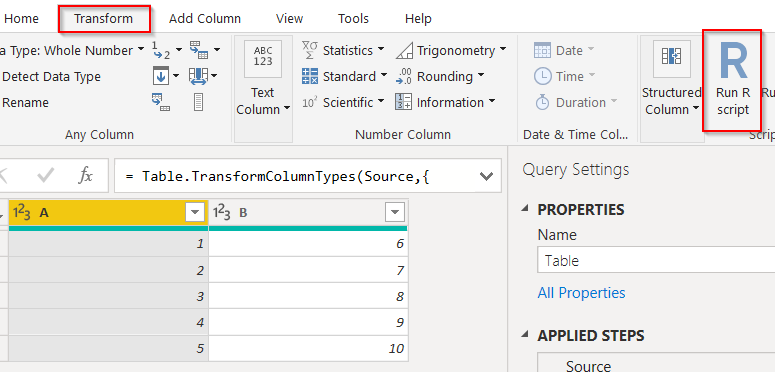 R lahko uporabimo znotraj poizvedbe. Vhodni podatek in izhodni podatek R vtičnika bo vedno dataframe. Oglejmo si enostaven primer.